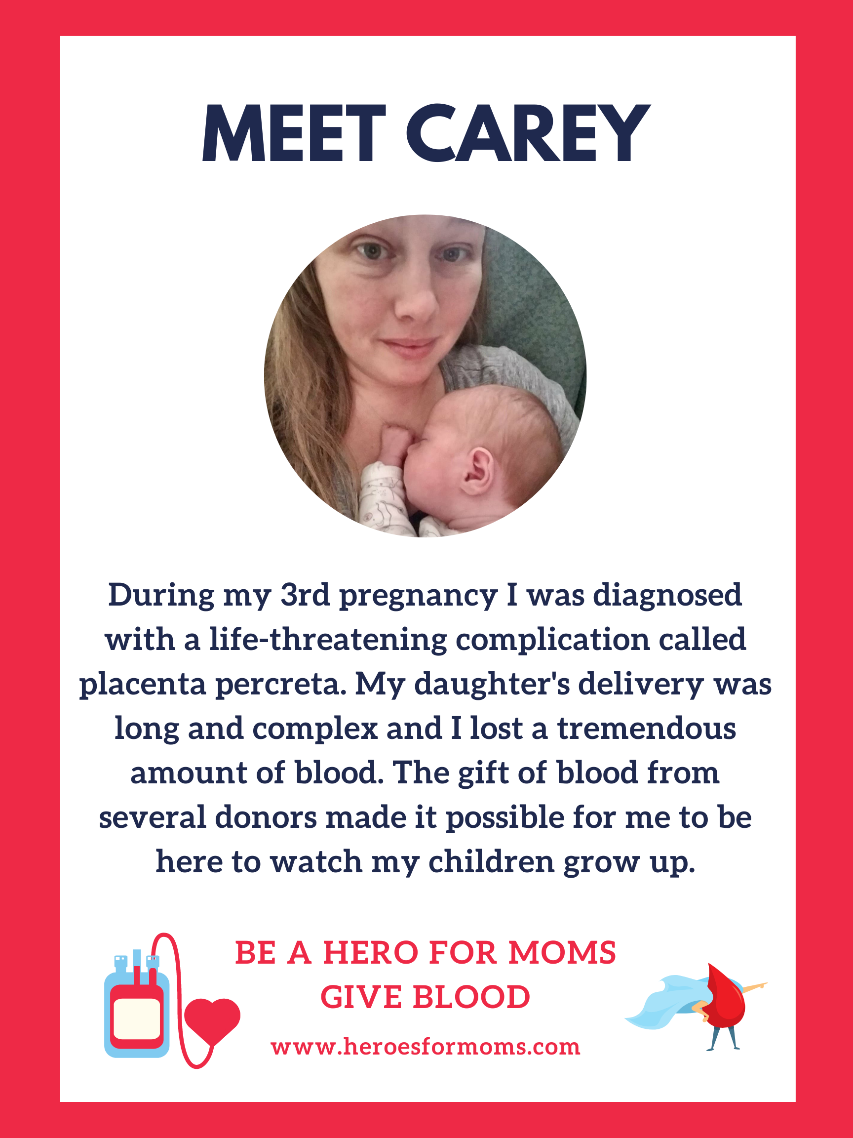 The need for blood is constant and increasing: rates of obstetric blood product transfusion have increased by 33% since 2001. More and more moms are requiring blood transfusions to survive childbirth and this blood drive is an opportunity to save their lives!