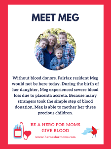 Look for the Inova Blood bloodmobile on the gravel path on the National Mall at the March for Moms. There will be a registration table outside the bloodmobile to register and complete the required forms to donate blood. You’ll have the opportunity to meet mothers who survived in part by blood transfusions after giving birth and are passionate about sharing their personal stories of why blood donations are so important.